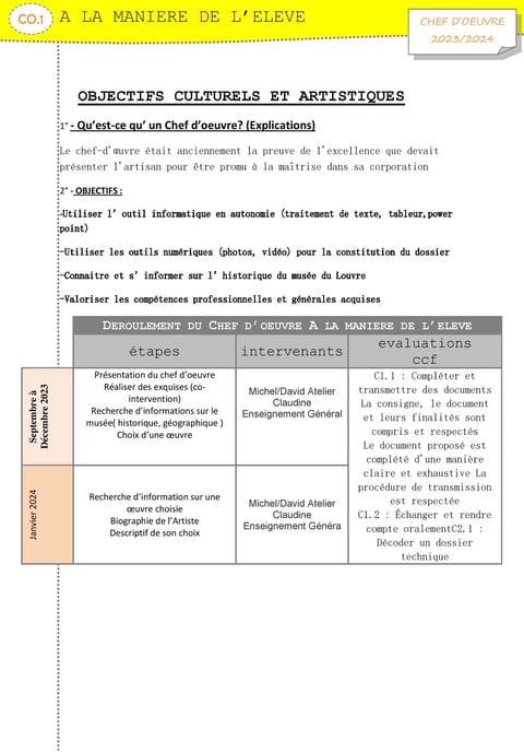Projet Chef d'oeuvre en Atelier ouverture d'esprit créatif et artistique.....