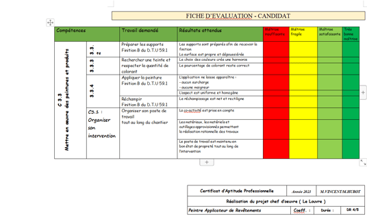 Cette année, les élèves de l'atelier peintre applicateur de revêtements ont une nouvelle tâche : constituer un dossier chef d'oeuvre consacré au musée du Louvre. Cette nouveauté implique que les élèves doivent faire preuve de créativité pour reproduire des oeuvres d'arts et les exposer au sein de l'établissement. C'est une occasion unique pour les étudiants de montrer leur talent artistique et leur passion pour l'art. Le musée du Louvre étant l'un des musées les plus prestigieux au monde, cette initiative permet aux élèves de s'immerger dans le monde de l'art et d'en apprendre davantage sur les chefs-d'œuvre qui y sont exposés. Ce projet représente non seulement un défi artistique, mais aussi une opportunité pour les élèves de développer leur sens de l'esthétique et d'apprécier l'art sous toutes ses formes.